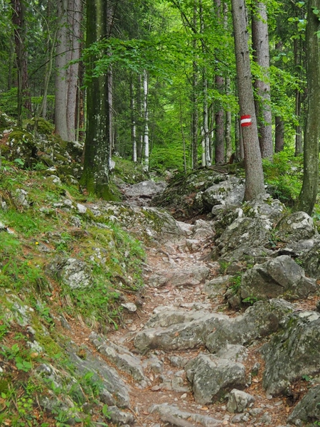 Wir genießen die Klamm ganz alleine, drehen kurz vor dem Ende um und treffen beim Abstieg einen Steinmarder, der uns widerwillig vorbeilässt und uns ständig folgt bis zum Ausstieg, weil er dort seine Wohnung in einer Höhle hat. Ein Genuss in jeder Hinsicht, diese Klamm. Man kann sie übrigens auch auf einem Forstweg umgehen. Von der Jausenstation Guter Hirte ist’s auch nicht mehr weit zum Wandergebiet Teichalm.